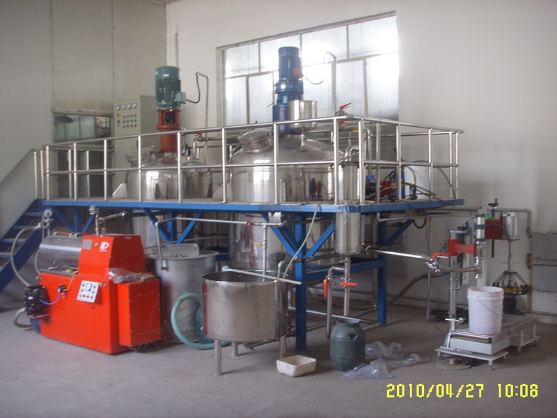 涂料成套設(shè)備采用液體計(jì)量器計(jì)量,高剪切乳化分散,真空吸料,真空消泡,半自動(dòng)灌裝工藝流程,從投料到出成品一道工序。涂料成套設(shè)備特殊設(shè)計(jì)的組合式乳化頭結(jié)構(gòu),確保了被加工物料在高、中、低各種粘度狀態(tài)下無死角運(yùn)行;釜內(nèi)動(dòng)態(tài)混合和釜外靜態(tài)混合的完善結(jié)合,保證顏料和高粘度樹脂的高度分散和充分混合。特殊的抽真空設(shè)計(jì),保證物料在真空狀態(tài)下生產(chǎn),可實(shí)現(xiàn)真空自動(dòng)吸料過程,減輕勞動(dòng)強(qiáng)度。完整的配置,無須用戶別配其他輔助設(shè)備接通電源即可生產(chǎn)。釜內(nèi)高剪切和釜外高剪切粉碎功能的同時(shí)作用,保證了物料的進(jìn)一步細(xì)化,并大大縮短了操作時(shí)間。